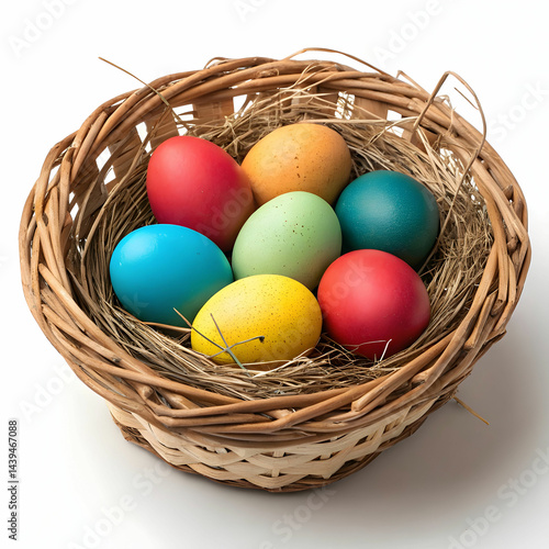 © muhammad, Obraz premium multi colored eggs in basket