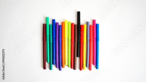 Obraz premium multi-colored felt-tip pens on the white isolated background, 18 colors.