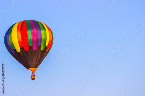 © Tom, Naklejka premium Multi Colored Hot Air Balloon Above Tree Line