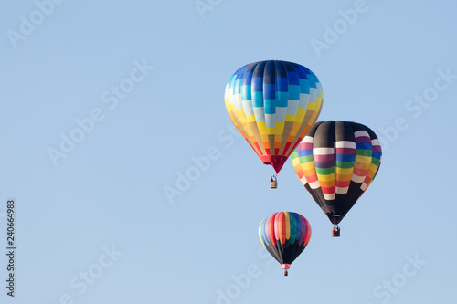 Fototapeta premium Multi colored hot air balloon flying over blue sky
