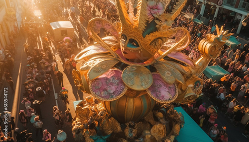 Naklejka premium Multi colored lanterns illuminate crowded city streets at night generated by AI
