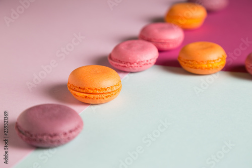 Obraz premium Multi-colored macaroons on a colored background