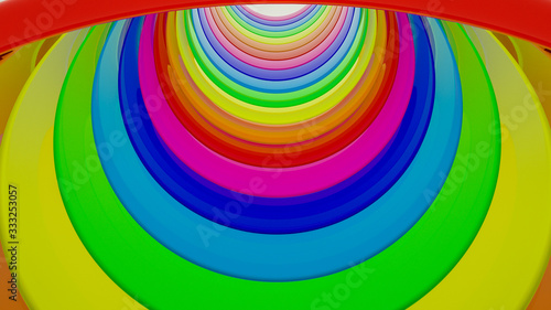 © toomler, Fototapeta premium multi-colored three-dimensional rings. rainbow background. 3d render illustration