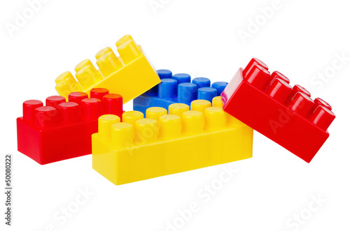 Fototapeta premium Multi-coloured Plastic building blocks, it is isolated on white