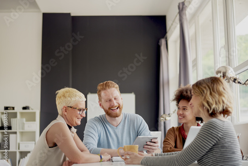 © chika_milan, Obraz premium Multi ethnic team having meeting and presentation at modern office