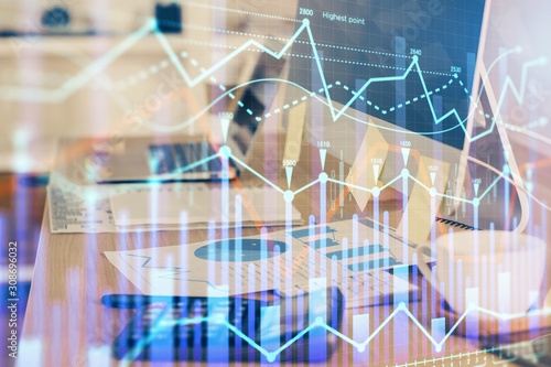 © peshkova, Obraz premium Multi exposure of forex chart and work space with computer. Concept of international online trading.
