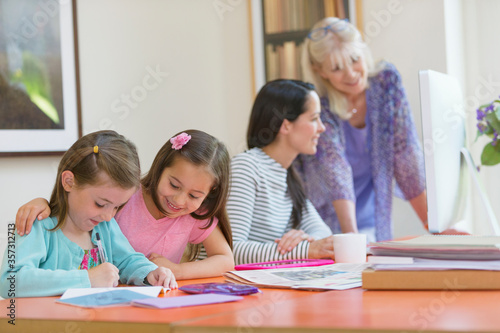© Robert Daly/KOTO, Fototapeta premium Multi-generation family doing homework and using computer