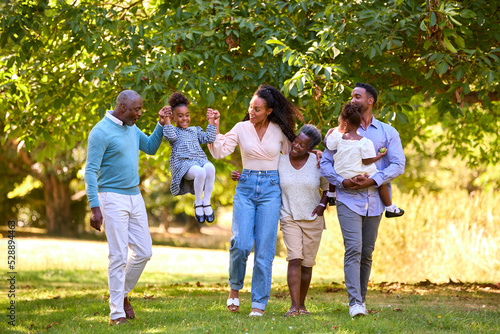 Fototapeta premium Multi-Generation Family Enjoying Walk In Countryside Together Swinging...