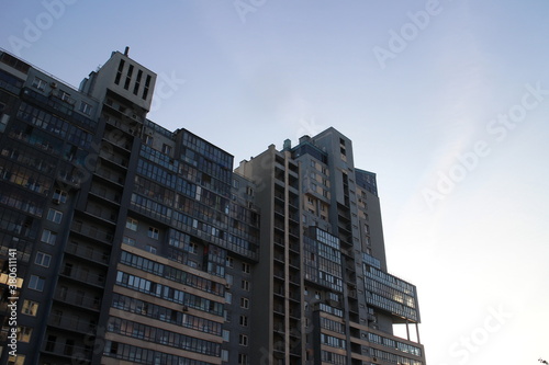 © Andrey, Fototapeta premium Multi-storey building at an acute angle
