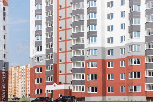 Fototapeta premium Multi-storey modern residential building. Housing construction. Residential fund. Mortgage loans for young families.