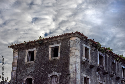 © robert , Fototapeta premium Multi-Windowed Abandoned Stone Monastery With Ominous Clouds, Braga, Portugal