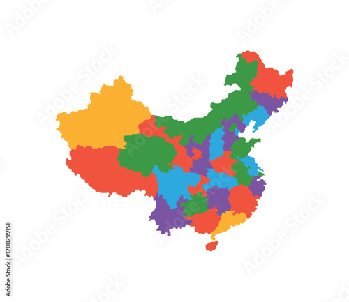 © Abdul, Fototapeta premium Multicolor China map political regions simple flat vector