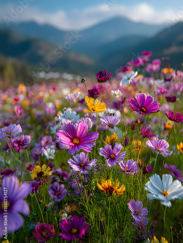 © Jack, Obraz premium Multicolor Cosmos meadow field spring