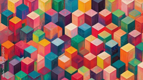 © Sleeping Carbuncle, Obraz premium Multicolor Cubes Pattern Three Dimensional Geometric Abstract Decorative Design