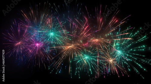 Fototapeta premium Multicolor fireworks explosion in night black sky.