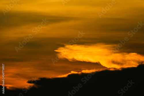 Fototapeta premium multicolor heap giant orange sunset cloud and dark sky
