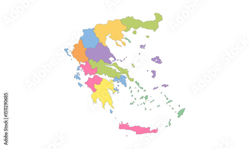 © Rhealea, Obraz premium Multicolor Map of Greece with Regions