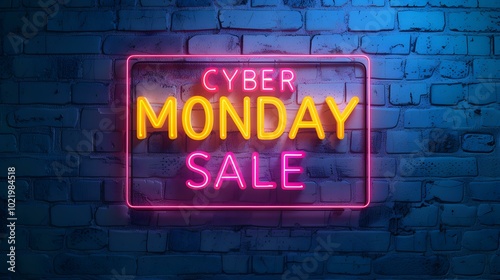Obraz premium Multicolor Neon 'CYBER MONDAY SALE' Sign on a Brick Wall