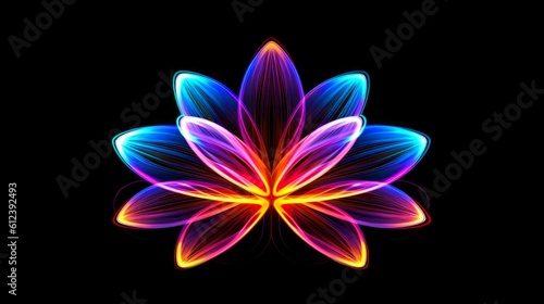© AITTHIPHONG, Fototapeta premium Multicolor neon light drawing, abstract shape flowers isolated on black background. Glowing line art. The Illumination of vibrant radiance of neon flower, Generative AI illustration