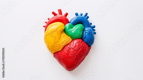 Naklejka premium Multicolored Anatomical Heart Model on White Background