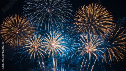 Naklejka premium Multicolored bright festive fireworks in the night sky.