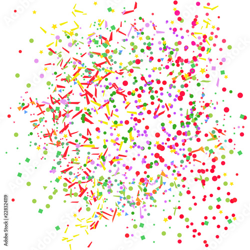 Fototapeta premium Multicolored confetti on isolated white. Geometric background with glitters. Pattern for design. Print for flyers, posters, banners and textiles. Greeting cards. Luxury texture