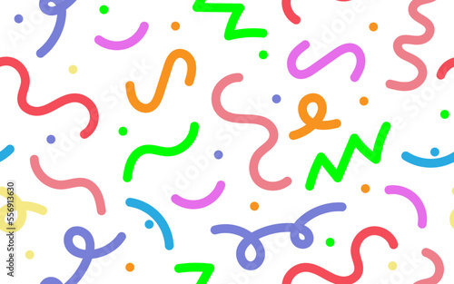 © Vassiliy, Fototapeta premium Multicolored doodle lines. Seamless pattern. Creative minimalist design from basic shapes