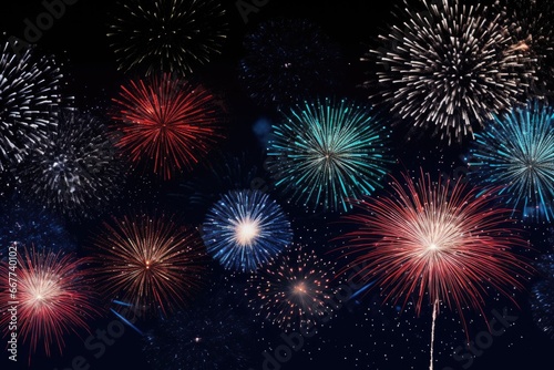 Naklejka premium Multicolored festival celebration fireworks background at night time