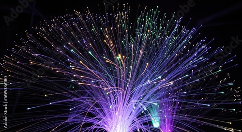 Obraz premium Multicolored fiber optic lights burst outward against a black background