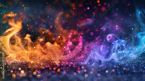 © Krit, Obraz premium Multicolored flames, covered with glitter.