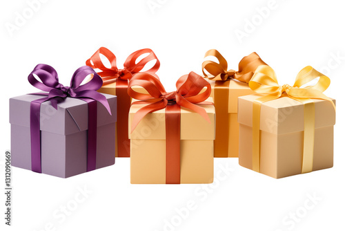 © Olexandra, Fototapeta premium Multicolored gift boxes with bows isolated on transparent background.