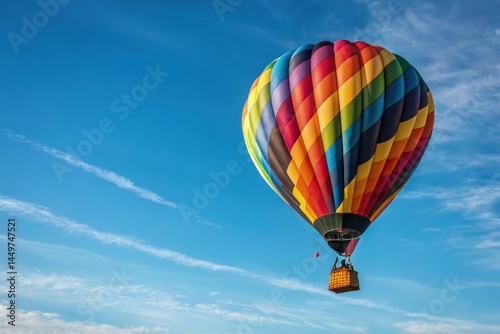 Fototapeta premium Multicolored Hot Air Balloon Soaring High in the Clear Sky Generative AI