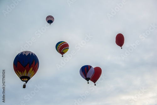 Fototapeta premium Multicolored hot air balloons on a blue cloudy sky