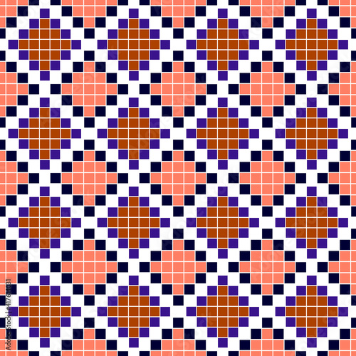 © Lukeriya, Fototapeta premium Multicolored mosaic background in classic style. Geometric pattern seamless from squares on a white background.
