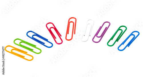 © Ragnarocks, Fototapeta premium Multicolored paper clips isolated on white