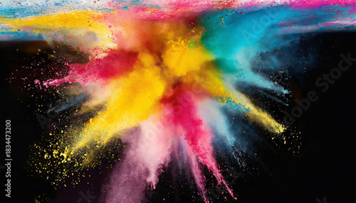 © marcorubino, Fototapeta premium Multicolored powder explosion on black background