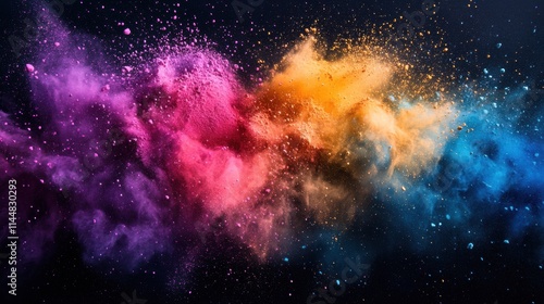© Наталья Гаврилкина, Naklejka premium Multicolored rainbow powder paint explosion background, Holi on dark background, abstract background