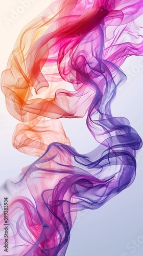 Fototapeta premium Multicolored smoke twirls against a light blue backdrop, its edges subtly...