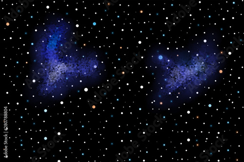 Fototapeta premium Multicolored stars twinkle in the dark night sky. Cosmic view. Galaxy and...