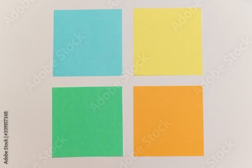 Fototapeta premium multicolored stickers. papers for records. office tools on the white backround