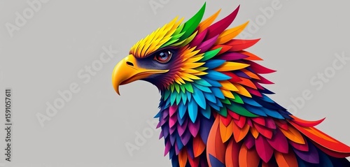 © Charuwan, Obraz premium Multicolored stylized eagle, vibrant plumage, abstract design, symbol, graphic design