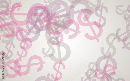 Fototapeta premium Multicolored translucent dollar signs on white background. Red tones. 3D...