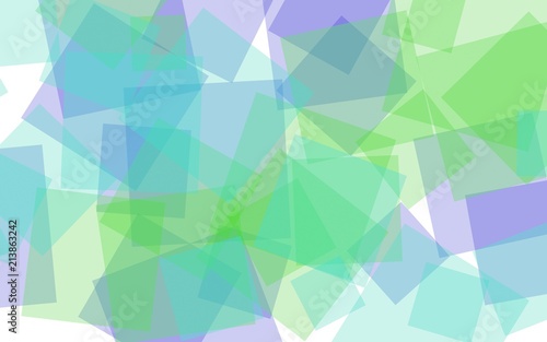 © Plastic man, Fototapeta premium Multicolored translucent squares on white background. Green tones. 3D illustration