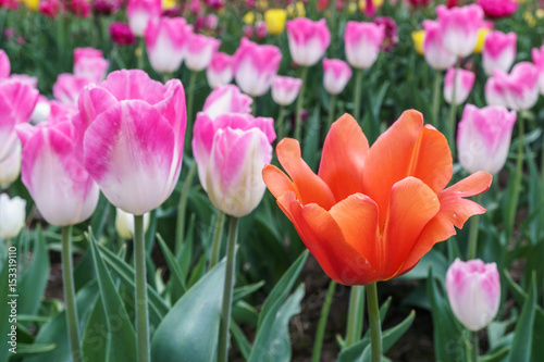Obraz premium Multicolored tulips outside in parks and farms