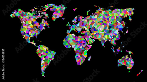 Fototapeta premium Multicolored world map on black background. Illustration.