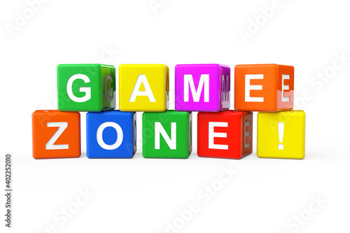Fototapeta premium Multicoloured Alphabet Cubes with Game Zone Sign. 3d Rendering