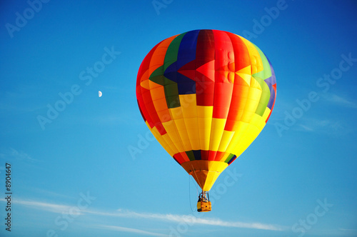 © grinny, Obraz premium Multicoloured balloon flying in the clean blue sky.