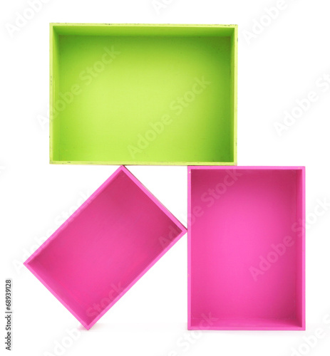 Fototapeta premium Multicoloured wooden boxes on white background isolated