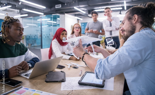 © .shock, Obraz premium multiethnic business team learning about drone technology