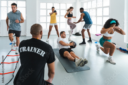 Fototapeta premium Multiethnic group of sportive people doing functional workout at the gym,...